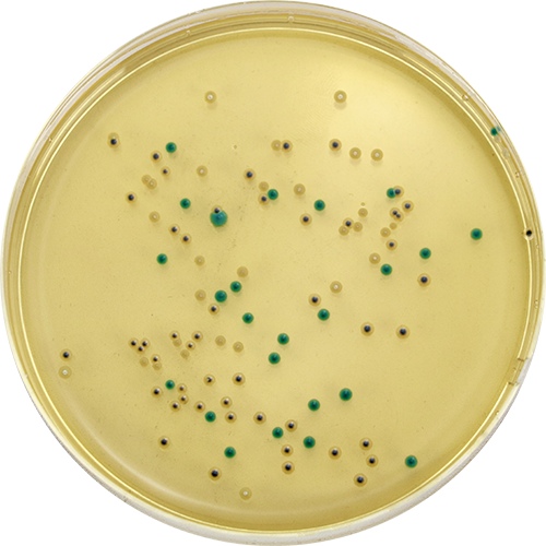 大肠杆菌 / 大肠菌群显色培养基是青岛海博生物公司改良的培养基,用于食品、水、牛奶、冰激凌和肉制品中大肠杆菌的快速检测。大肠杆菌显蓝绿色,大肠菌群显无色,其它菌显黄色或无色,革兰氏阳性菌被抑制。