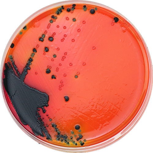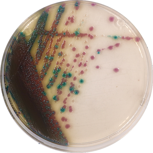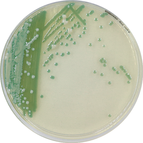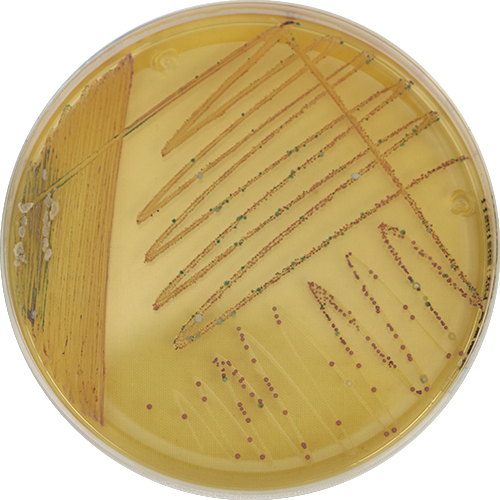 志贺氏菌显色培养基用于食品、病人粪便样品中志贺氏菌的快速检测。志贺氏菌显白色或无色,有些宋内氏志贺氏菌有蓝色中心;大肠杆菌和大肠菌群显绿色或黄色;沙门氏菌显黄色或无色并有黑色中心;其它细菌显蓝绿色或黄色。变形杆菌和铜绿假单胞菌基本不生长;是一种很理想的快速检测培养基。
