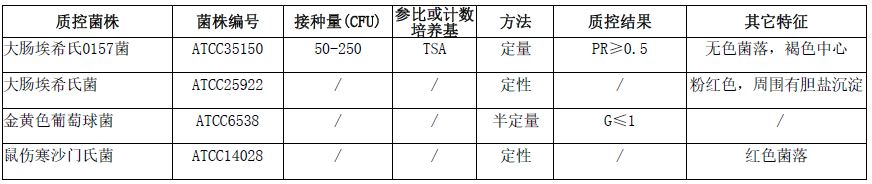 改良山梨醇麦康凯(CT-SMAC)琼脂微生物质控结果: