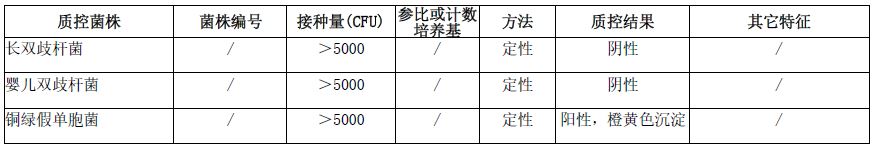 葡萄糖酸盐(双歧杆菌)微生物质控结果: