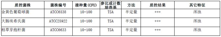按标签用法制备培养基,接种以下质控菌株,放置36±1℃需氧培养18-24小时。