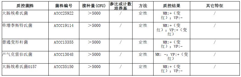 按标签用法制备培养基,接种以下质控菌株,放置36±1℃需氧培养24-48小时。