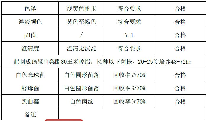 3.微生物限度指标:致病菌不得检出,芽孢杆菌不得检出,菌落总数≤5000CFU/g。
