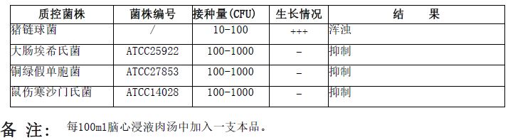 每支添加于100ml HB8297-1脑心浸液肉汤中 |