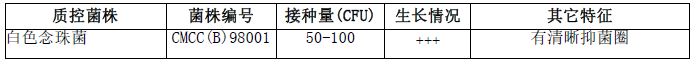 按标签用法制备培养基,接种以下质控菌株,放置30℃需氧培养24-36小时。