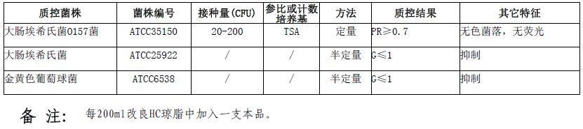 每支添加于220.5ml HB9174蛋白胨-氯化钠-纤维二糖-多粘菌素E(PNCC)增菌液中 |