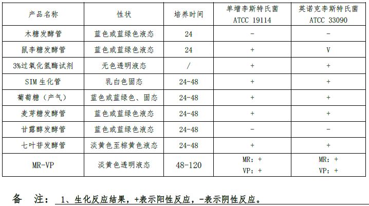 单增李斯特氏菌成套生化鉴定管质量控制: