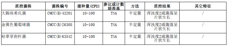 按标签用法制备培养基,接种以下质控菌株,放置36±1℃需氧培养18-24小时。
