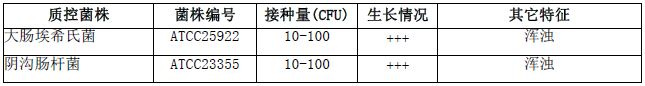按标签用法制备培养基,接种以下质控菌株,放置36±1℃需氧培养18-24小时。