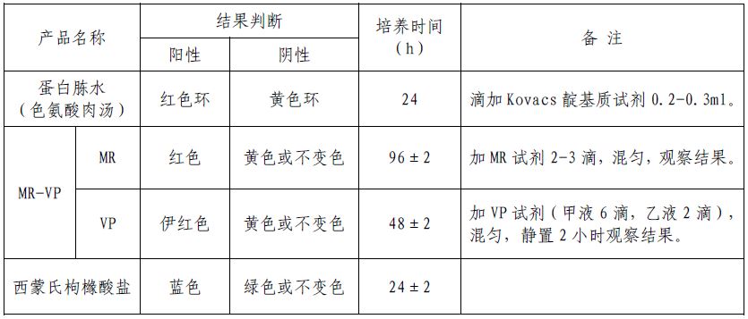 注:如出现上表以外的生化反应类型,表明培养物可能不纯,需重新划线分离,必要时做重复试验。