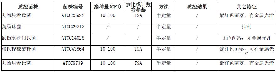 按标签用法制备培养基,接种以下质控菌株,放置36±1℃需氧培养24±2小时。