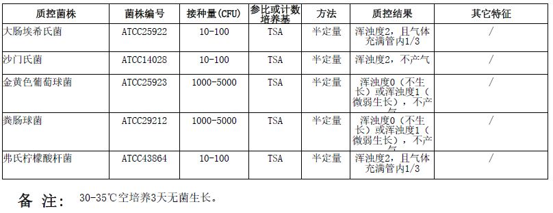 接种以下质控菌株,放置36±1℃需氧培养48±2小时。