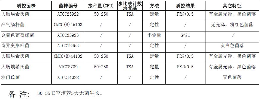接种以下质控菌株,放置36±1℃需氧培养18-24小时。