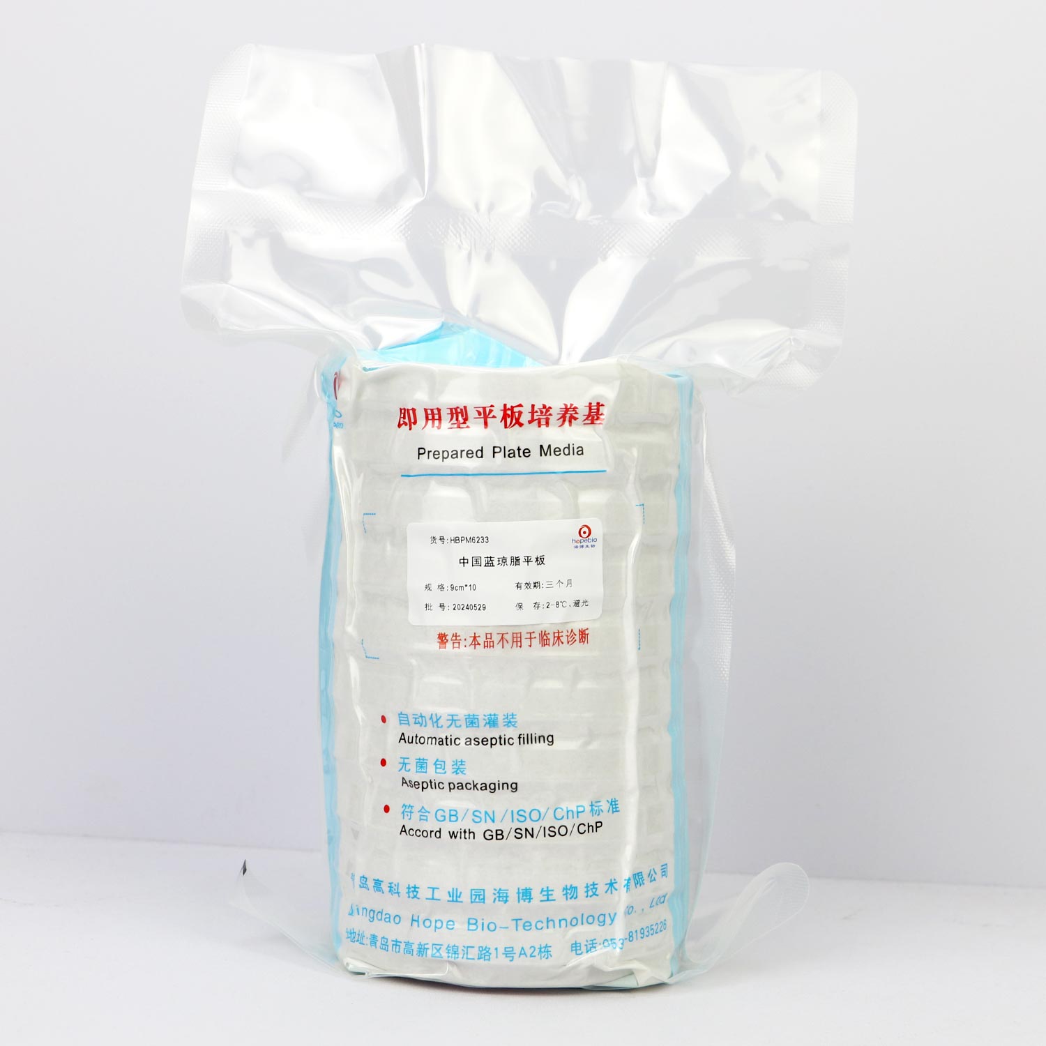 中国蓝琼脂平板(9cm)微生物灵敏度试验: