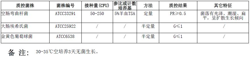 接种以下质控菌株,放置42±1℃微需氧培养24-48小时。