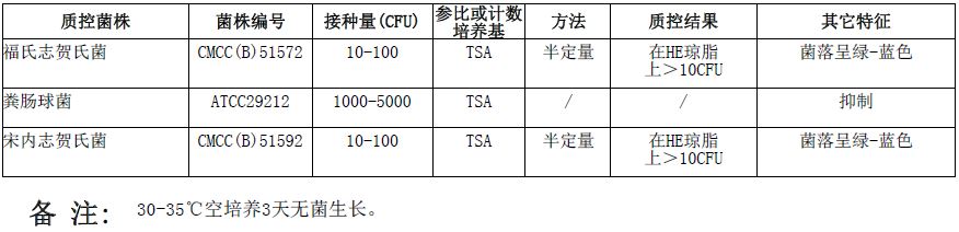 按标签用法制备培养基,接种以下质控菌株,放置36±1℃需氧培养18-24小时。
