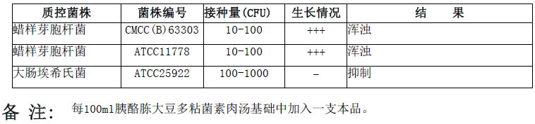 每支添加于100ml HB4131 氯化钠多粘菌素B肉汤基础(SCPB)中 |