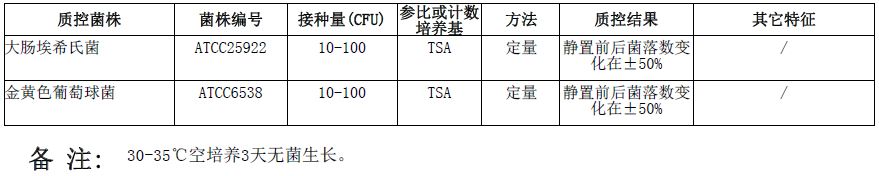 按标签用法制备培养基,接种以下质控菌株,放置20-25℃需氧培养45分钟。