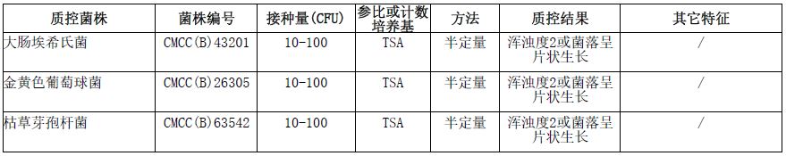 按标签用法制备培养基,接种以下质控菌株,放置36±1℃需氧培养18-24小时。
