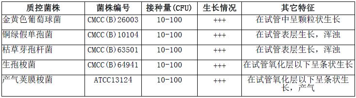 液体硫乙醇酸盐培养基(颗粒)(袋装)微生物灵敏度试验: