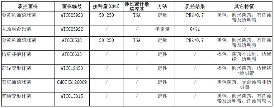 按标签用法制备培养基,接种以下质控菌株,放置36±1℃需氧培养45-48小时。