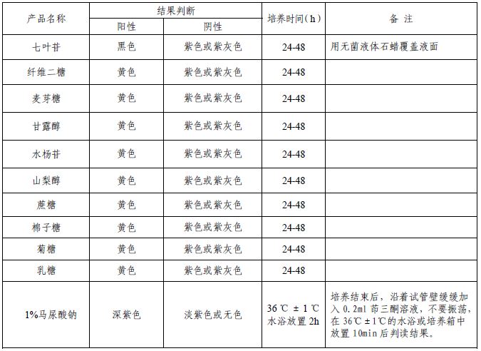 七叶苷、纤维二糖、麦芽糖、甘露醇、水杨苷、山梨醇、蔗糖、棉子糖、菊糖、乳糖、1%马尿酸钠。