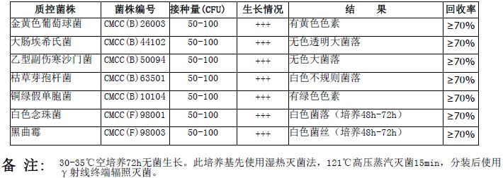 大豆酪蛋白琼脂培养基TSA平板(9cm)微生物灵敏度试验: