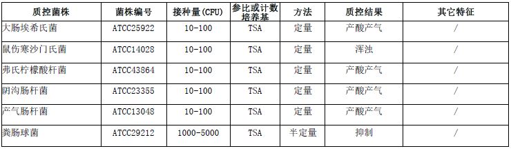 双料乳糖胆盐发酵培养基微生物质控结果: