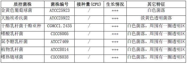 按标签用法制备培养基,接种以下质控菌株,放置30±1℃需氧培养3-7天。