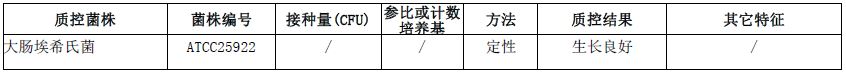 按标签用法制备培养基,接种以下质控菌株,放置36℃需氧培养18-24小时。