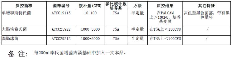 每支添加于225ml HB4193 Fraser培养基或HB4190 Half-Fraser培养基中 |