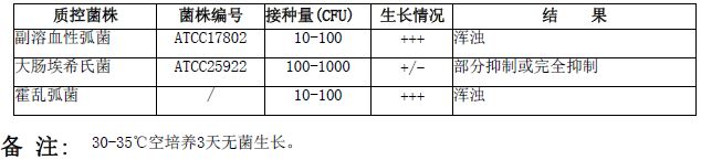 按标签用法制备培养基,接种以下质控菌株,放置37±1℃需氧培养18-24小时。