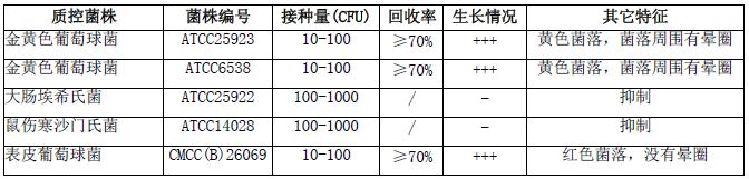 用于金黄色葡萄球菌的选择性分离培养(中国药典) |