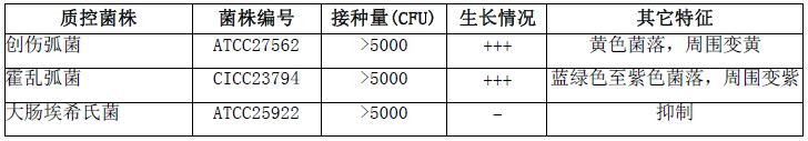 按标签用法制备培养基,接种以下质控菌株,放置36±1℃需氧培养18-24小时。