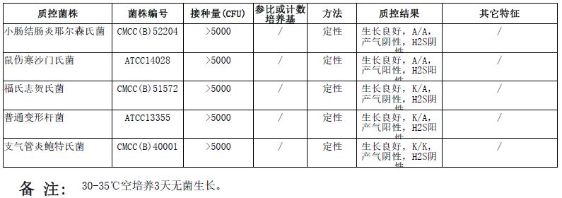 改良克氏双糖铁管(5ml)微生物灵敏度试验: