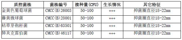 抗生素检定培养基微生物质控结果: