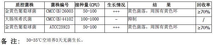 甘露醇氯化钠琼脂培养基平板(9cm)微生物灵敏度试验: