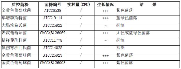 接种以下质控菌株,放置36±1℃需氧培养18-24小时。