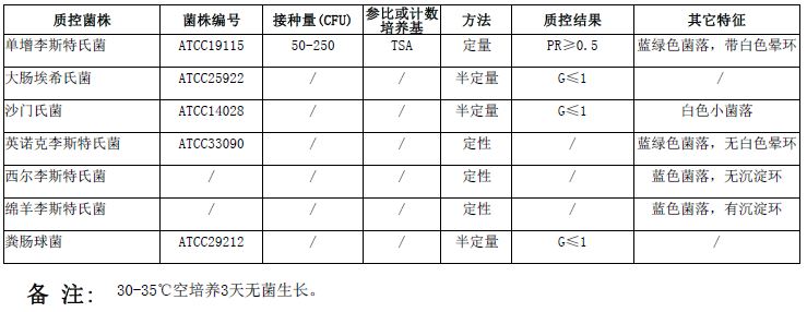 接种以下质控菌株,放置36±1℃需氧培养24-48小时。