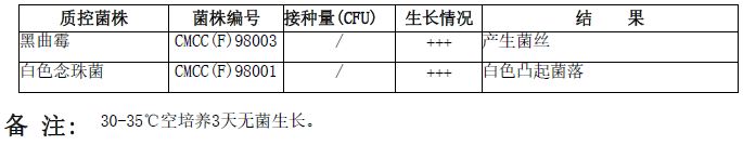 沙氏葡萄糖琼脂培养基管(长斜面)(20支)微生物质控结果: