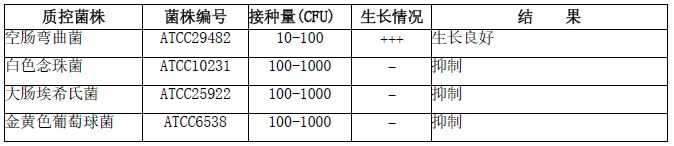 接种以下质控菌株,放置42±1℃需氧培养24-48小时。