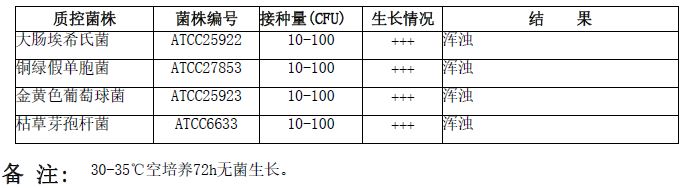 按标签用法制备培养基,接种以下质控菌株,放置36±1℃需氧培养18-24小时。