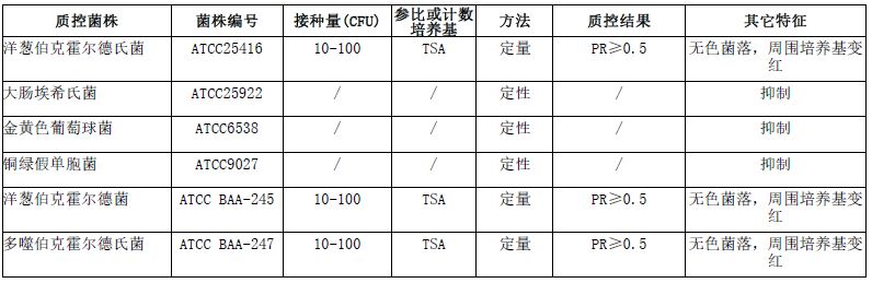 洋葱伯克霍尔氏菌鉴定培养基微生物质控结果: