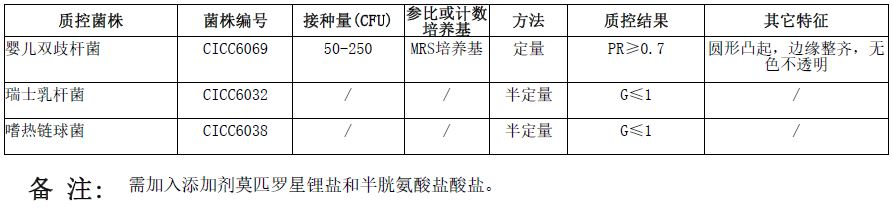 莫匹罗星锂盐和半胱氨酸盐酸盐改良MRS琼脂培养基微生物质控结果: