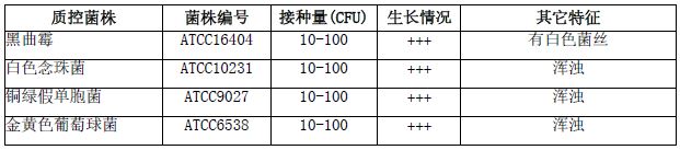 按标签用法制备培养基,接种以下质控菌株,放置30℃需氧培养24-72小时。