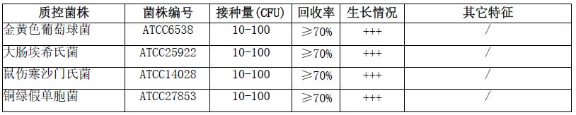 按标签用法制备培养基,接种以下质控菌株,放置35±2℃需氧培养40-48小时。