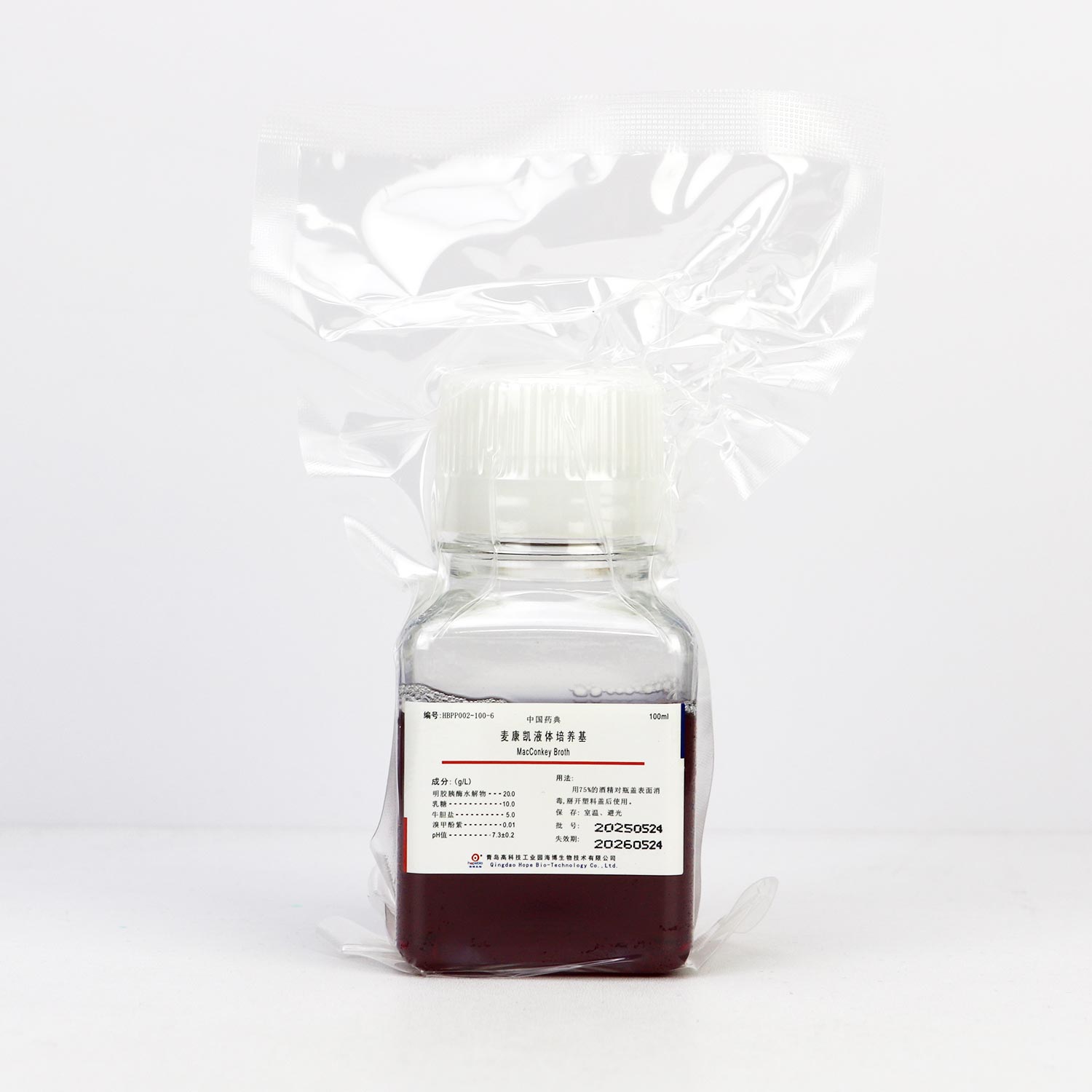 麦康凯液体培养基瓶装(100ml)微生物灵敏度试验:
