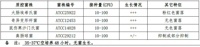 按标签用法制备培养基,接种以下质控菌株,放置36±1℃需氧培养24-36小时。