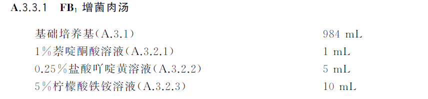 注:基础成分见HB4193-6 Fraser增菌肉汤(FB1、FB2)(GB4789.30-2025单李标准)