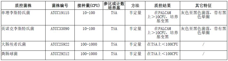按标签用法制备培养基,接种以下质控菌株,放置30±1℃需氧培养24±2小时。